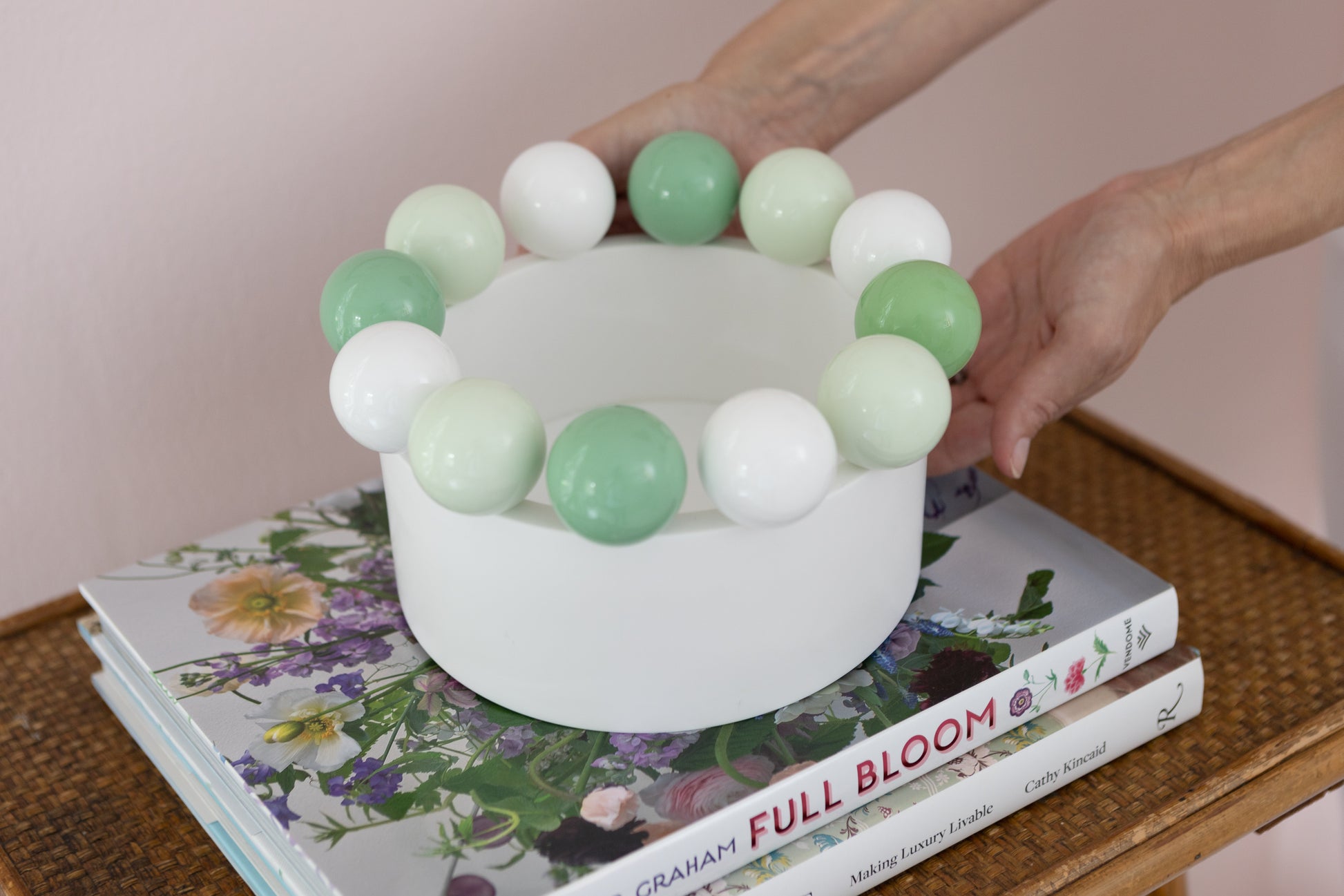 All Knobware products are handcrafted of luxury quartzite, corian, or similar solid-surface material. Food can be placed directly on the surface if you choose to use it as a serving piece. Each piece is heavy and durable. For best care, never lift by the knobs. To clean, use dishwasher soap and water or gentle countertop spray cleaner.